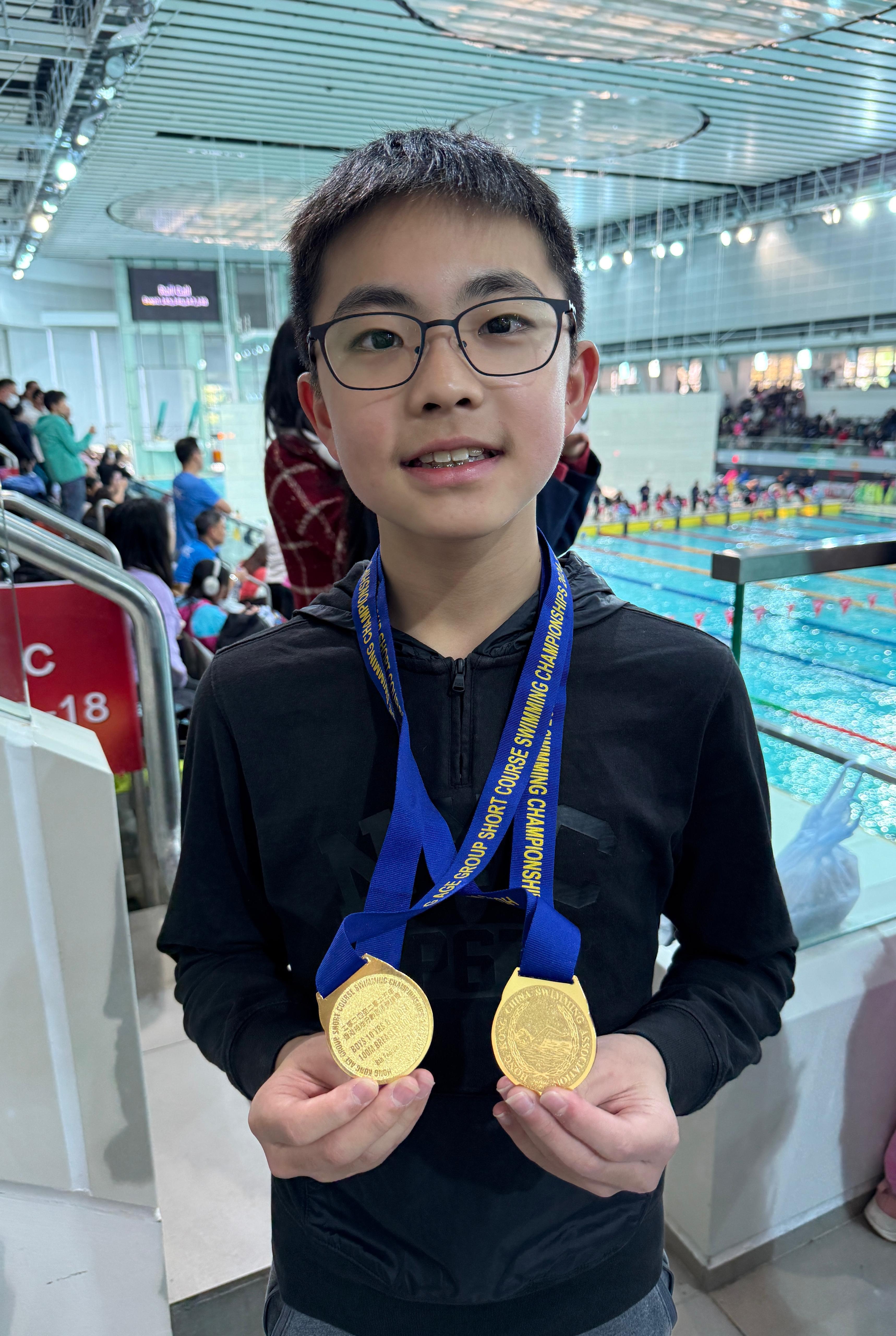 打破男子10歲及以下組50米蛙泳短池分齡紀錄陳頌銘